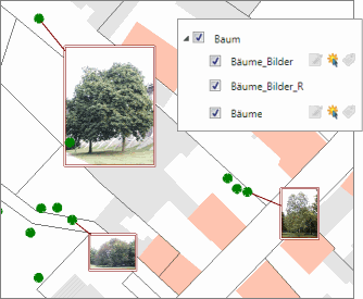 Mit dem Fotolayer können beliebige Bilder direkt in einem Kartenfenster platziert werden. Ein Fotolayer besteht im Standardfall aus zwei einzelnen Layern.