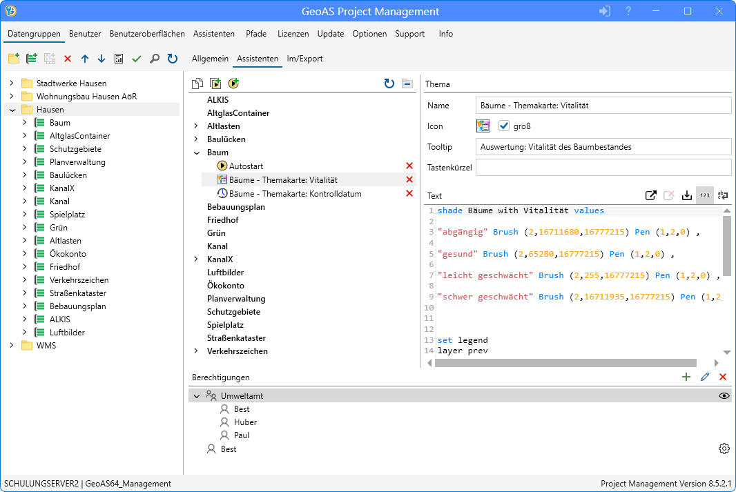 Eine detaillierte Funktionsbeschreibung der verschiedenen Assistenten finden Sie in der Hilfe von GeoAS Project.