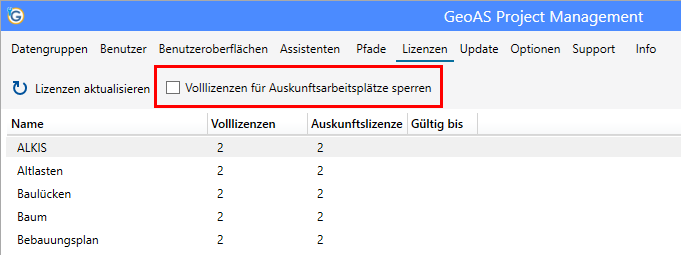 Die Lizenzen für GeoAS Project werden über das GeoAS Management zentral verwaltet.