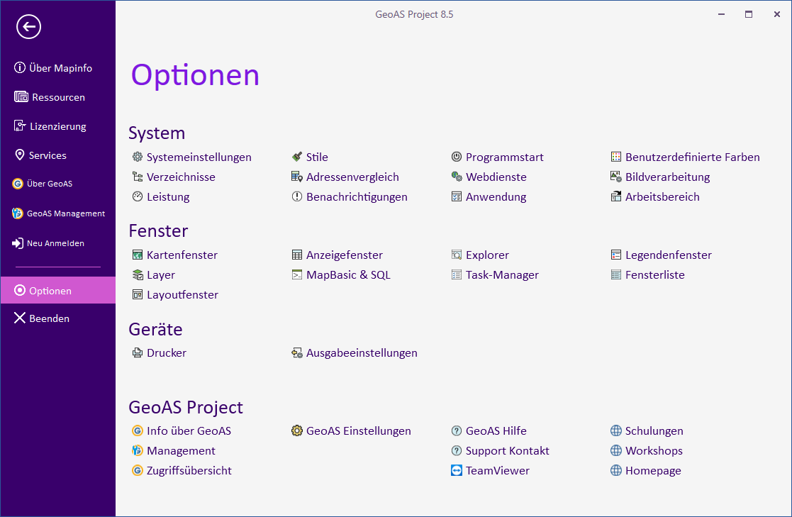 Voreinstellungen für GeoAS 8 Project (Auskunft-Lizenz)