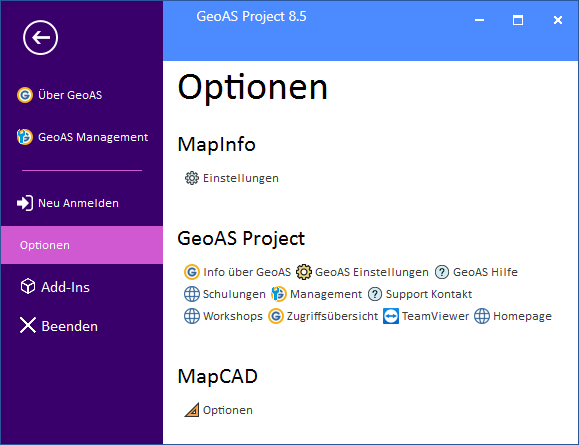 Voreinstellungen für GeoAS 8 Project (Voll-Lizenz)