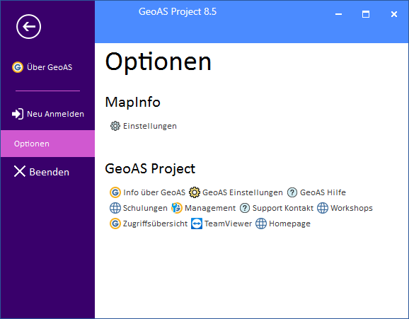•GeoAS 8 City (64-Bit): City > Optionen > (MapInfo) > Einstellungen